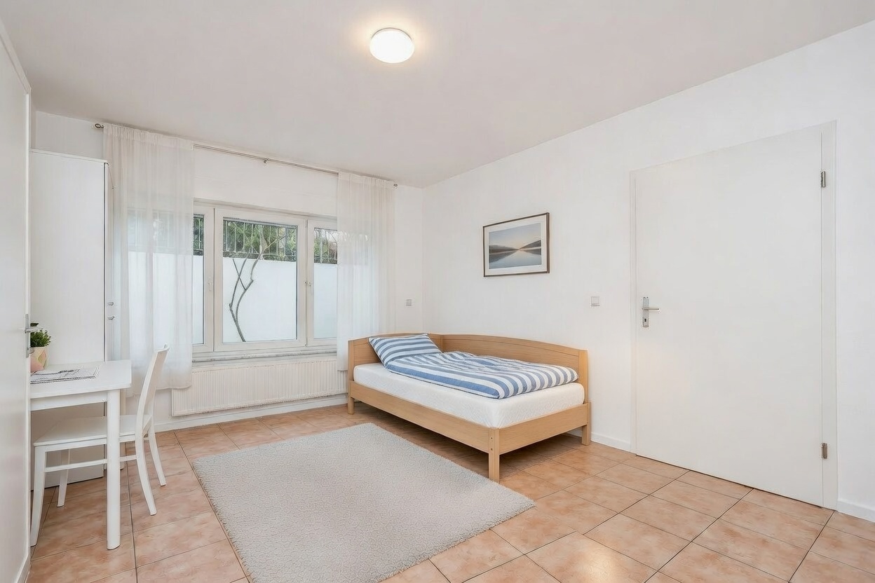 Dieses wunderschöne Einfamilienhaus wurde im Jahr 2010 erbaut und erfüllt alle Voraussetzungen von modernem Wohnen und perfekter Lage. Herzstück im Erdgeschoss bilden das großzügige Wohnzimmer und die Wohnküche mit anliegender, teilweise überdachter West-Terrasse. Dezent separiert gelegen gibt es auf dieser Etage zwei Schlafzimmer, ein Bad sowie ein Gäste-WC. Der Pooltrakt, mit großer Fensterfront nach Süden, vervollständigt diese Ebene. Im Obergeschoss befinden sich, neben dem Elternschlafzimmer mit Ankleide und Ensuite-Bad, jeweils zwei zusätzliche Schlafzimmer und Badezimmer sowie eine Loggia, die ebenfalls als Schlafzimmer genutzt werden kann. Neben diversen, tagesbelichteten Nutzräumen und dem Technikraum verfügt das Kellergeschoss über eine Einliegerwohnung mit zwei Zimmern, Küche und Bad, die über einen eigenen Eingang verfügt. In den meisten Schlafzimmern und Fluren gibt es hochwertige Einbauschränke mit viel Stauraum. Alle Zimmer sind mit Vollholzparkett ausgelegt. Das Gebäude wird durch eine Gasheizung in Verbindung mit Solarthermie und Fußbodenheizung versorgt. Das Haus befindet sich in einem bezugsfertigen Zustand.