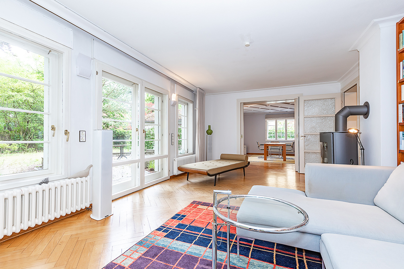 Die denkmalgeschützte Landhausvilla wurde 1922 auf einem ideal nach Süden ausgerichteten Grundstück erbaut. Das Haus ist von einem herrlichen Garten umgeben, auf dem eine majestätische Rotbuche steht, die im Sommer ausreichend Schatten spendet. Die hellen und großzügigen Zimmer im Erdgeschoss und im Obergeschoss bieten einer Familie mit Kindern ausreichend Platz. Sollte dieser Platz nicht ausreichen, gibt es auf der großen, noch nicht ausgebauten Fläche im Dachgeschoss weiteres Ausbaupotential. Im sehr schön integrierten Garagenanbau gibt es zwei Stellplätze.