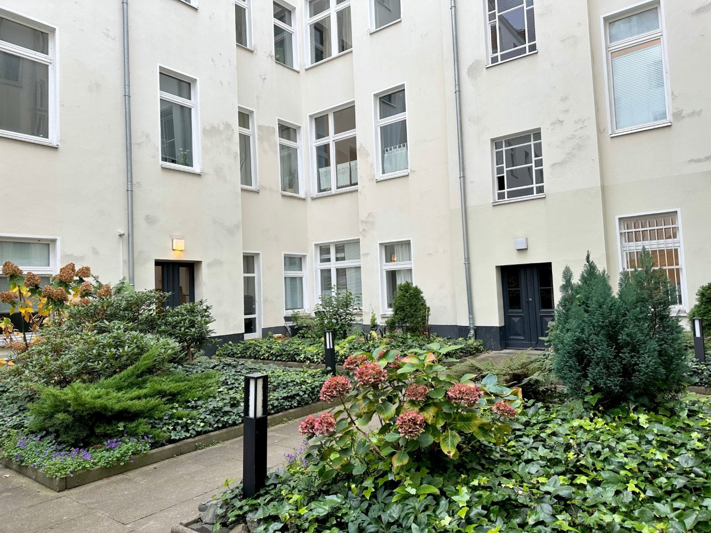 Über ein modernisiertes Treppenhaus gelangen Sie in die helle Einzimmerwohnung, welche sich in der vierten Etage des sanierten Seitenflügels befindet. Sie verfügt über ein westlich ausgerichtetes Zimmer, eine helle Küche und ein Duschbad. Eine kleine Kammer auf halber Treppe und ein Kellerabteil bieten zusätzliche Staumöglichkeiten. Die Fassaden, Treppenhäuser und Entrées, die beiden Innenhöfe und Teile […]